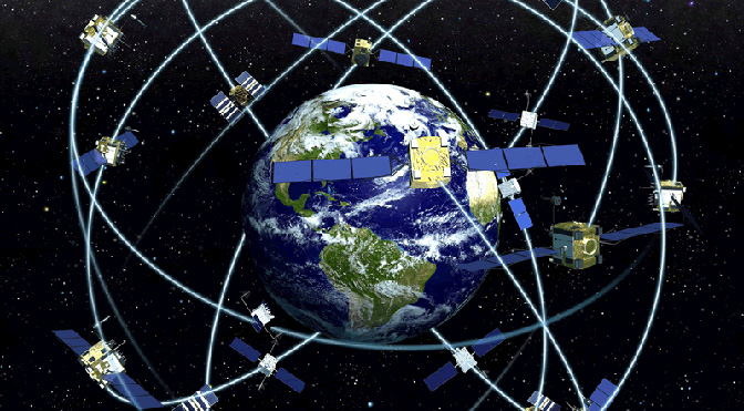 The Global Positioning System is a mega-jazzed-up system of triangulation. It starts with a system of satellites orbiting the Earth.