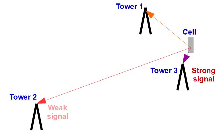 Usually, the closer a radio source is to a tower, the stronger the signal comes in. And the weaker, the further away it is. In the case of mobile phones, this means different towers determine how strong the radio signal from a phone is.