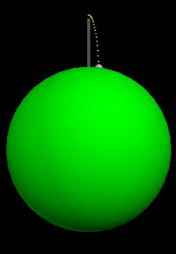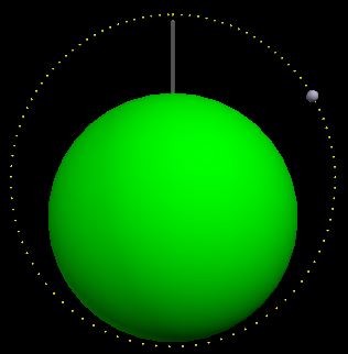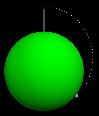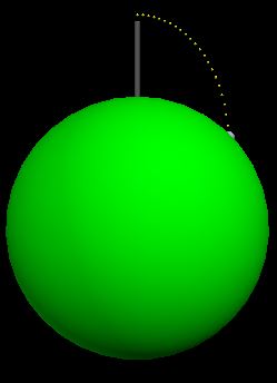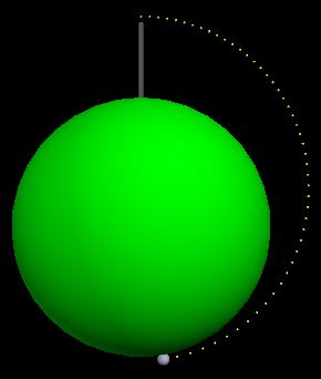 Yet, a funny thing has started happening. As the ball falls, the planet's natural curve moves away from it, causing the ball to have to "chase after" the surface. Also, note that the path of the ball is beginning to match the curve of the planet.