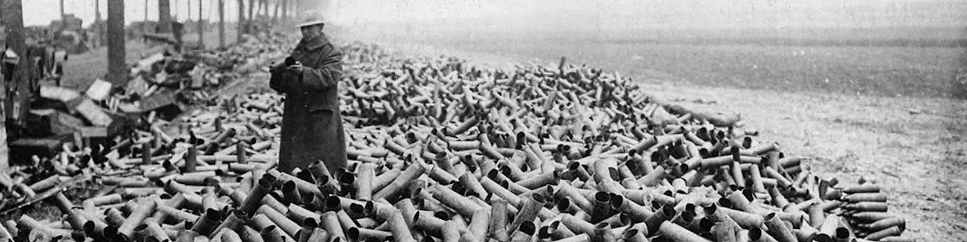 A pile of artillery shells. Artillery was used heavily to try and break the enemy trenches. Sometimes, shelling would go nonstop for days.