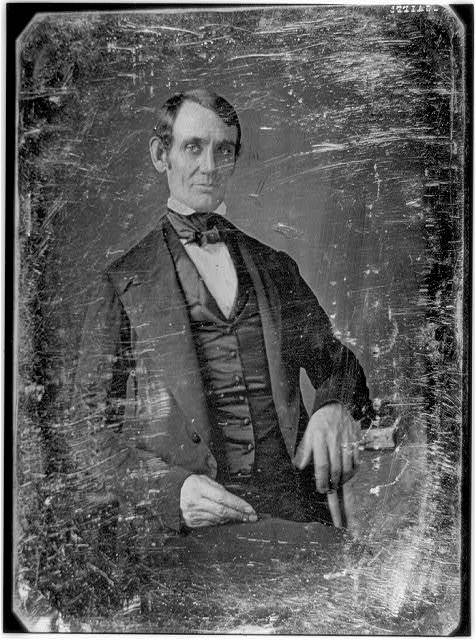 The big advancement comes with the Daguerreotype. Here the image is put onto a glass plate containing the compound silver nitrate. Silver nitrate turns dark when exposed to light, and so can be used to preserve the image.