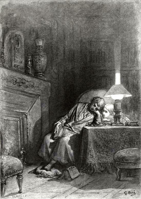 From my books surcease of sorrow—sorrow for the lost Lenore—